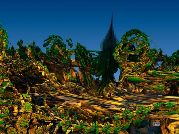 Coniferous Tree on Planet B. Digital fractal art printed on metal, single print. 24×32″. $550.00. Artist Lianne Todd.