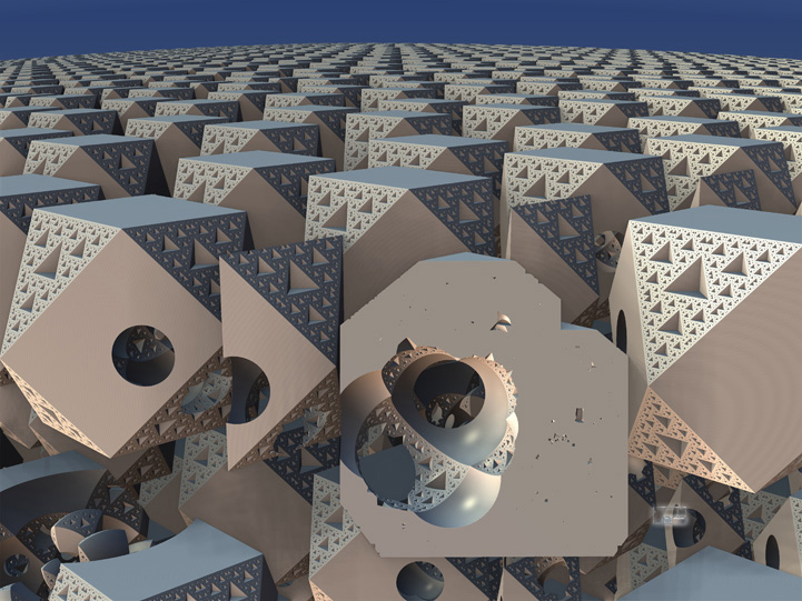 These pieces are created digitally from scratch (i.e. from mathematical formulas/parameters tweaked and adjusted by the artist) using fractal software such as Spangfract XTel and Oxidizer and Mandelbulb3D, and sometimes including photographs by the artist. Multiple images may be combined into one using Photoshop, and other enhancements are made.