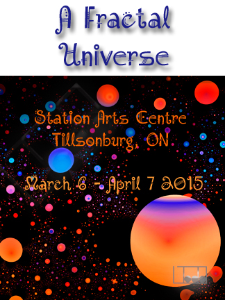 I haven’t written in a little while but I now have some great news for followers in the area who haven’t had a chance to see my fractals in person yet.  I am showing those that are left (31 pieces) at the Station Arts Centre in Tillsonburg for the month of March.  The show opens March 6 (this Friday) at 7-9 pm.  It runs until April 7.  The show is called, this time, A Fractal Universe.  Come land in it!