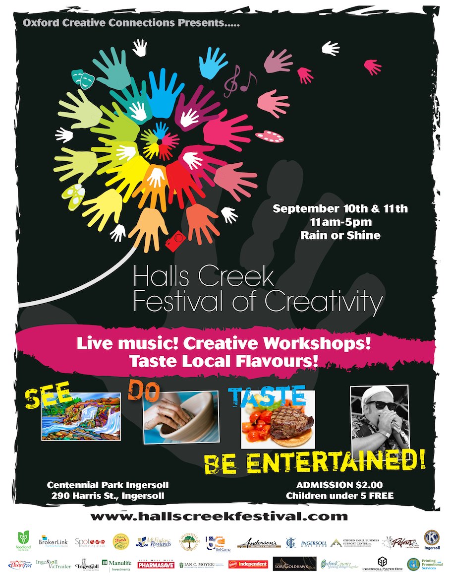 September 10 & 11 is the Halls Creek Festival of Creativity in Ingersoll, and I will be participating again!
